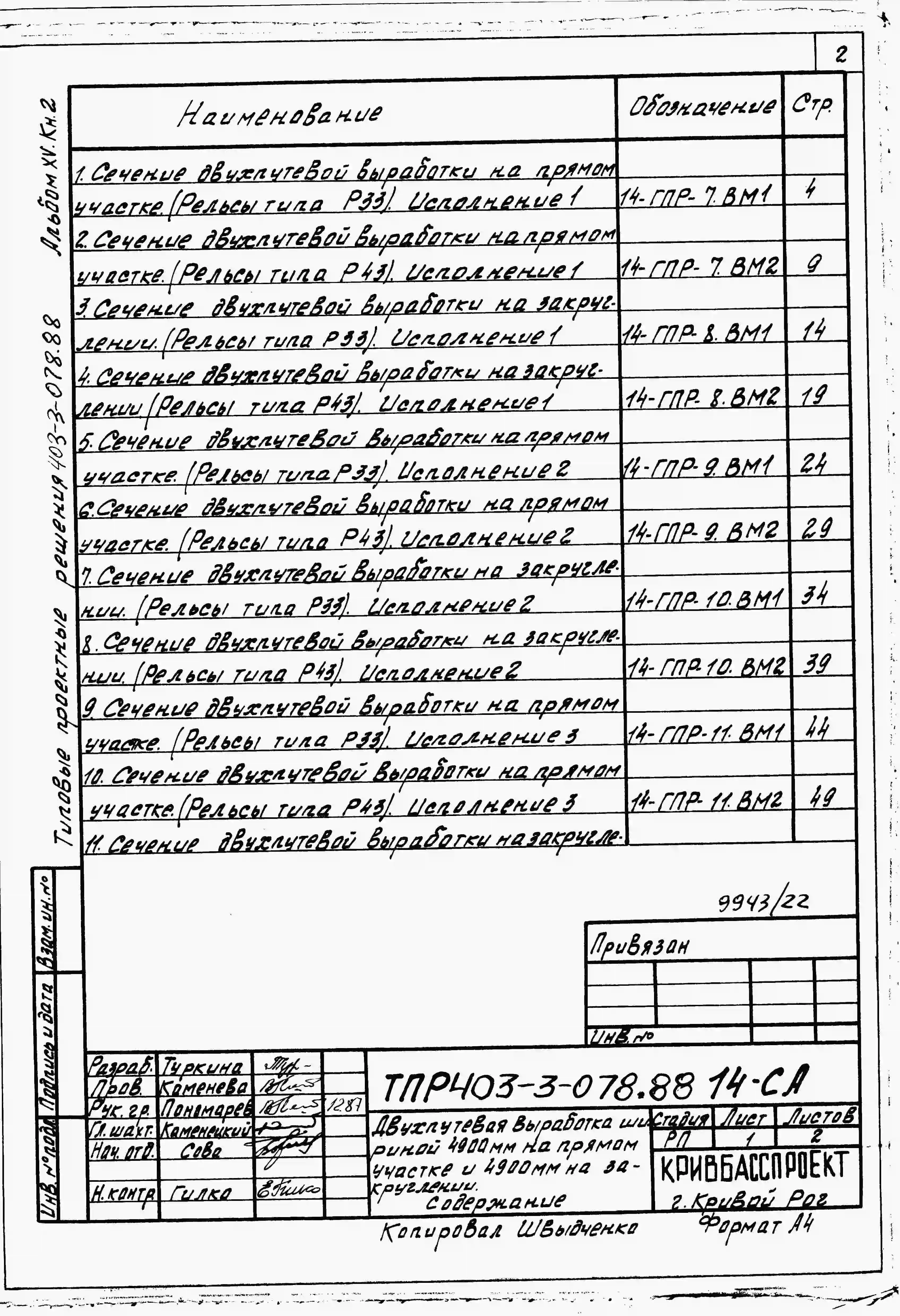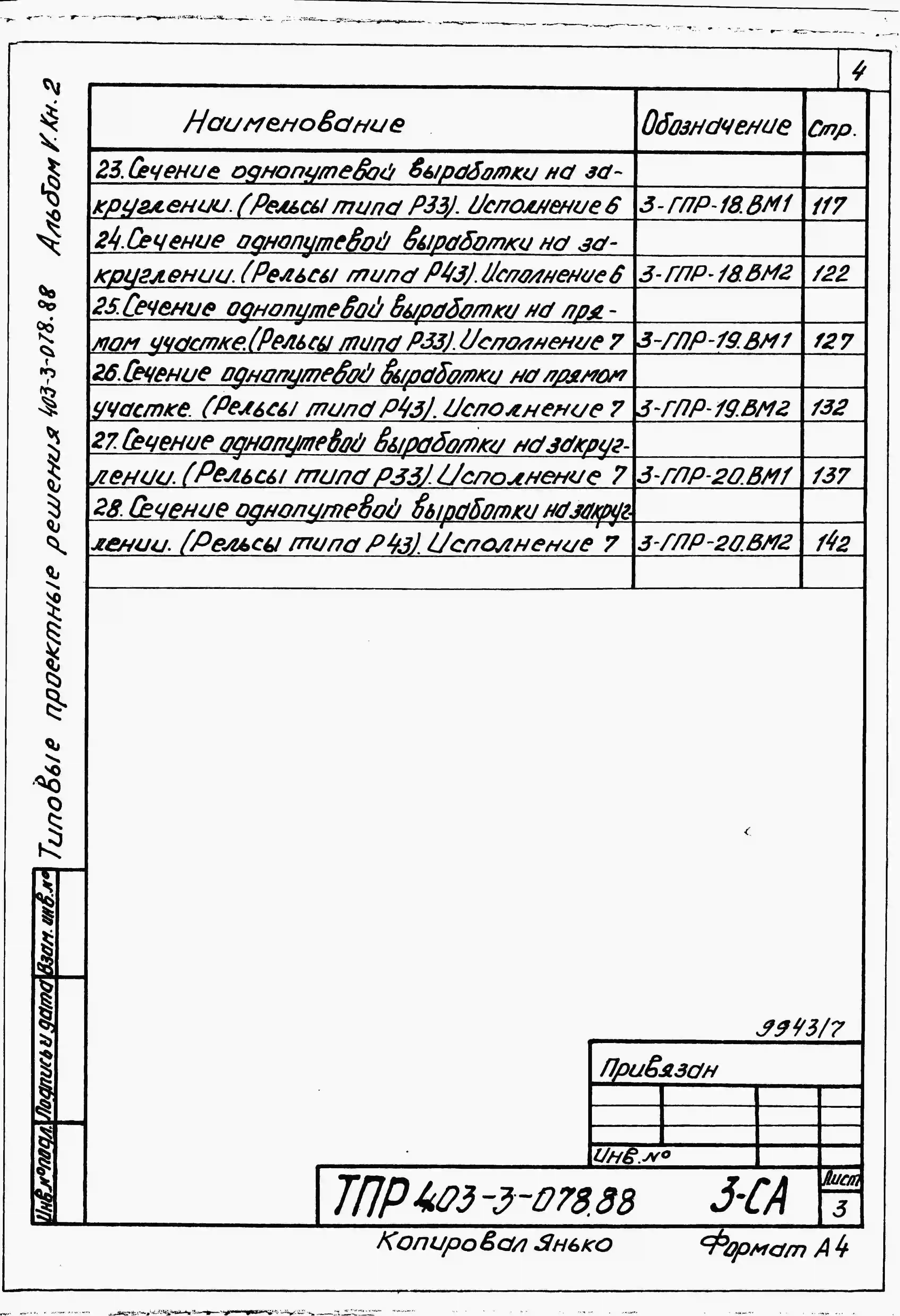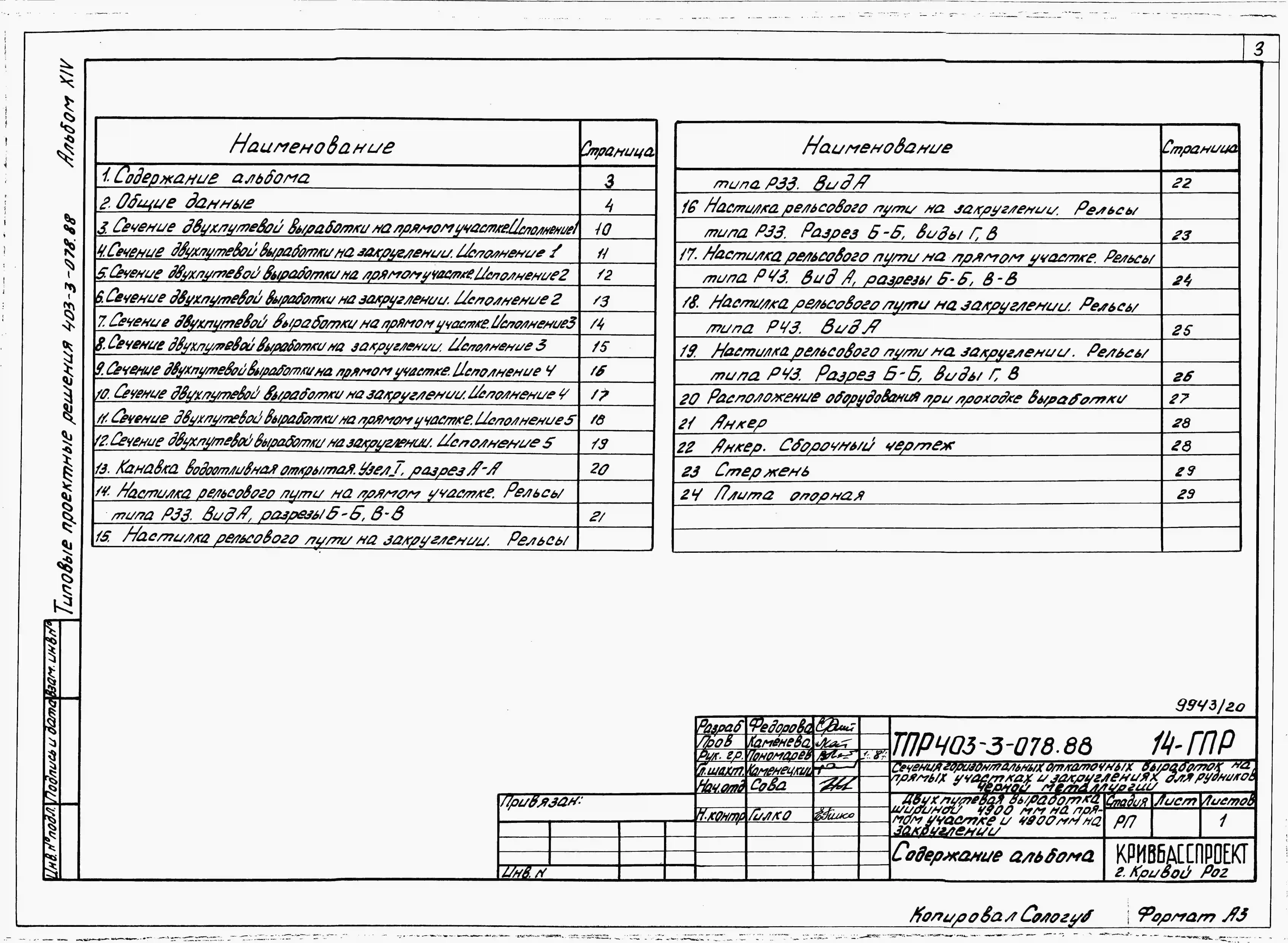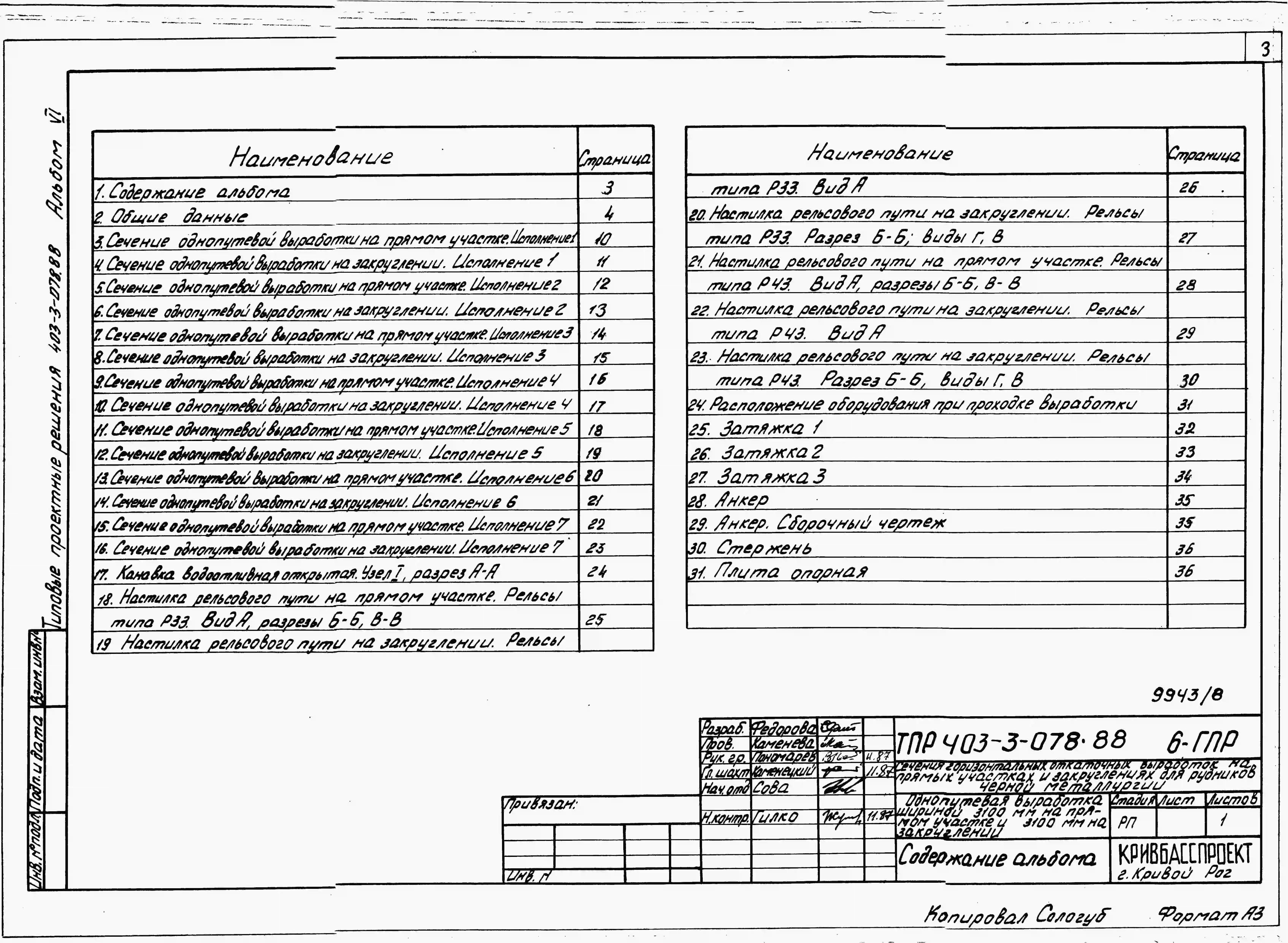 Типовой проект 403-3-078.88 Сечения горизонтальных откаточных выработок на прямых участках и закруглениях для рудников черной металлургии. Полный проект.