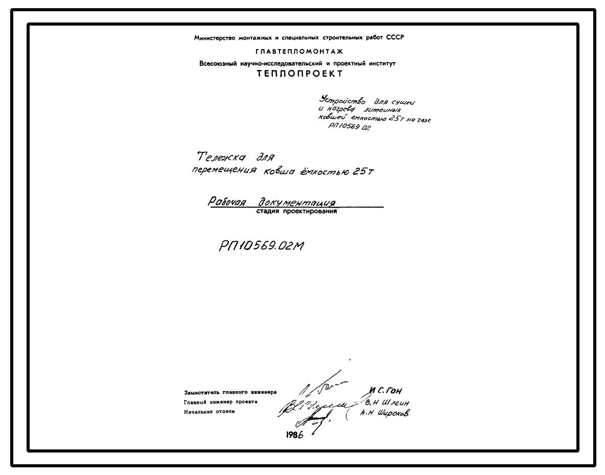 Проект РП10569.02М Тележка для перемещения ковша емкостью 25 т