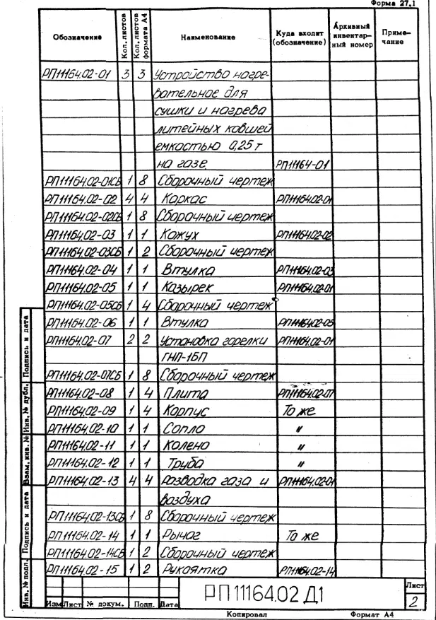 Проект РП11164.02 Устройтво нагревательное для сушки и нагрева литейных ковшей емкостью 0,25 т на газе