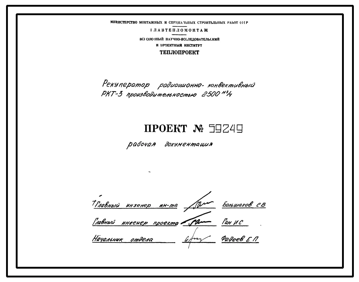 Проект 59249 Рекуператор радиационно-конвективный РКТ-3 производительностью 2500 м³/ч