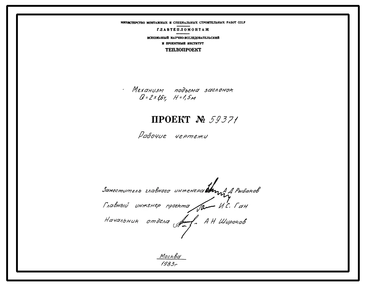 Проект 59371 Механизм подъема заслонок Q=2х1,6 т; Н=1,5 м