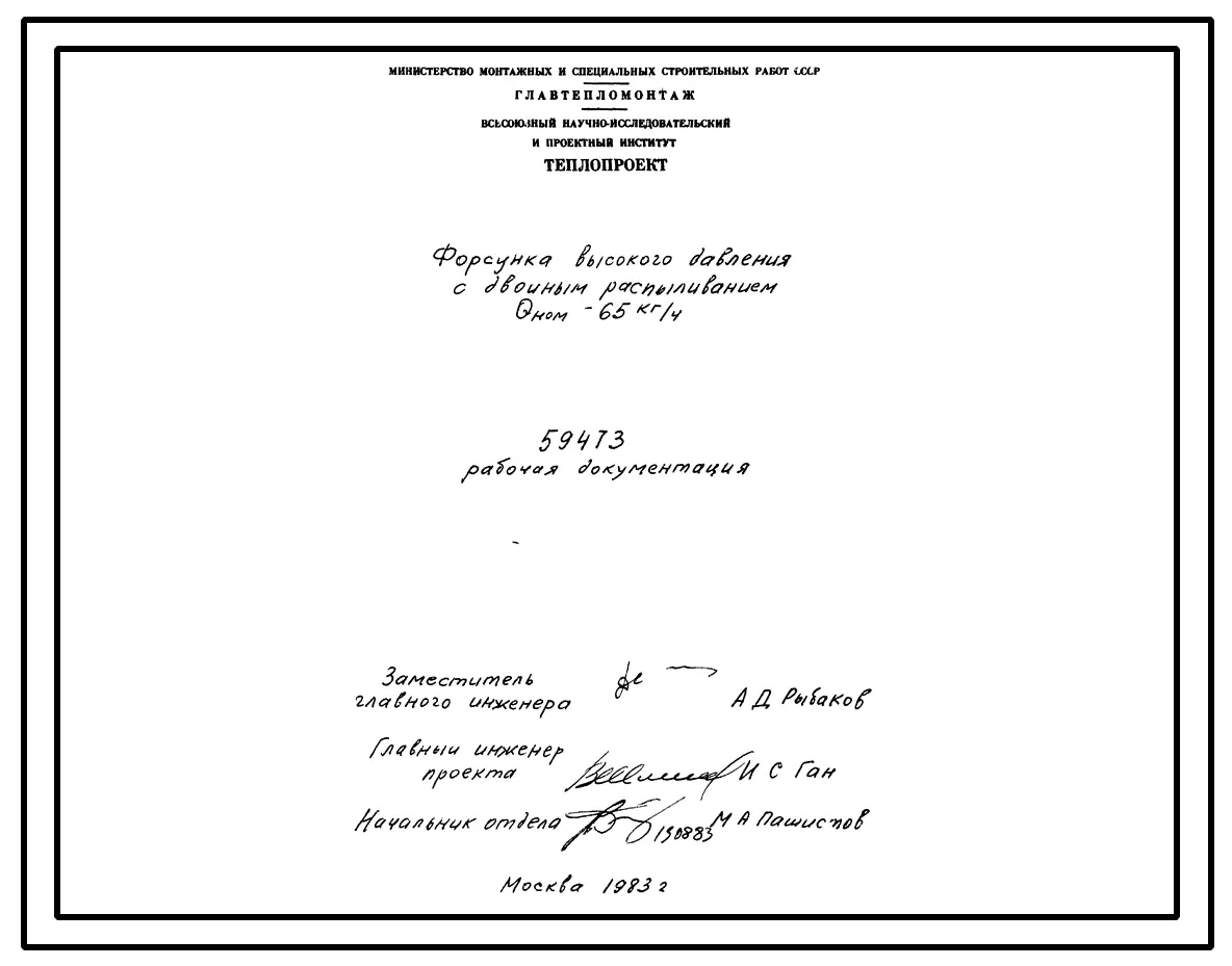 Проект 59473 Форсунка высокого давления с двойным распыливанием Qном.=65кг/ч