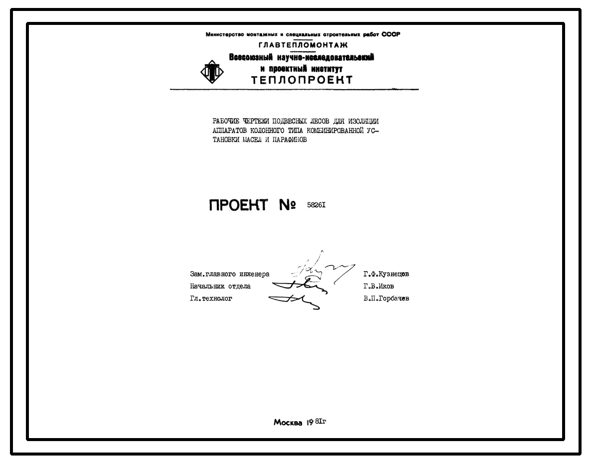 Проект 58261Рабочие чертежи подвесных лесов для изоляции аппаратов колонного типа комбинированной установки масел и парафинов
