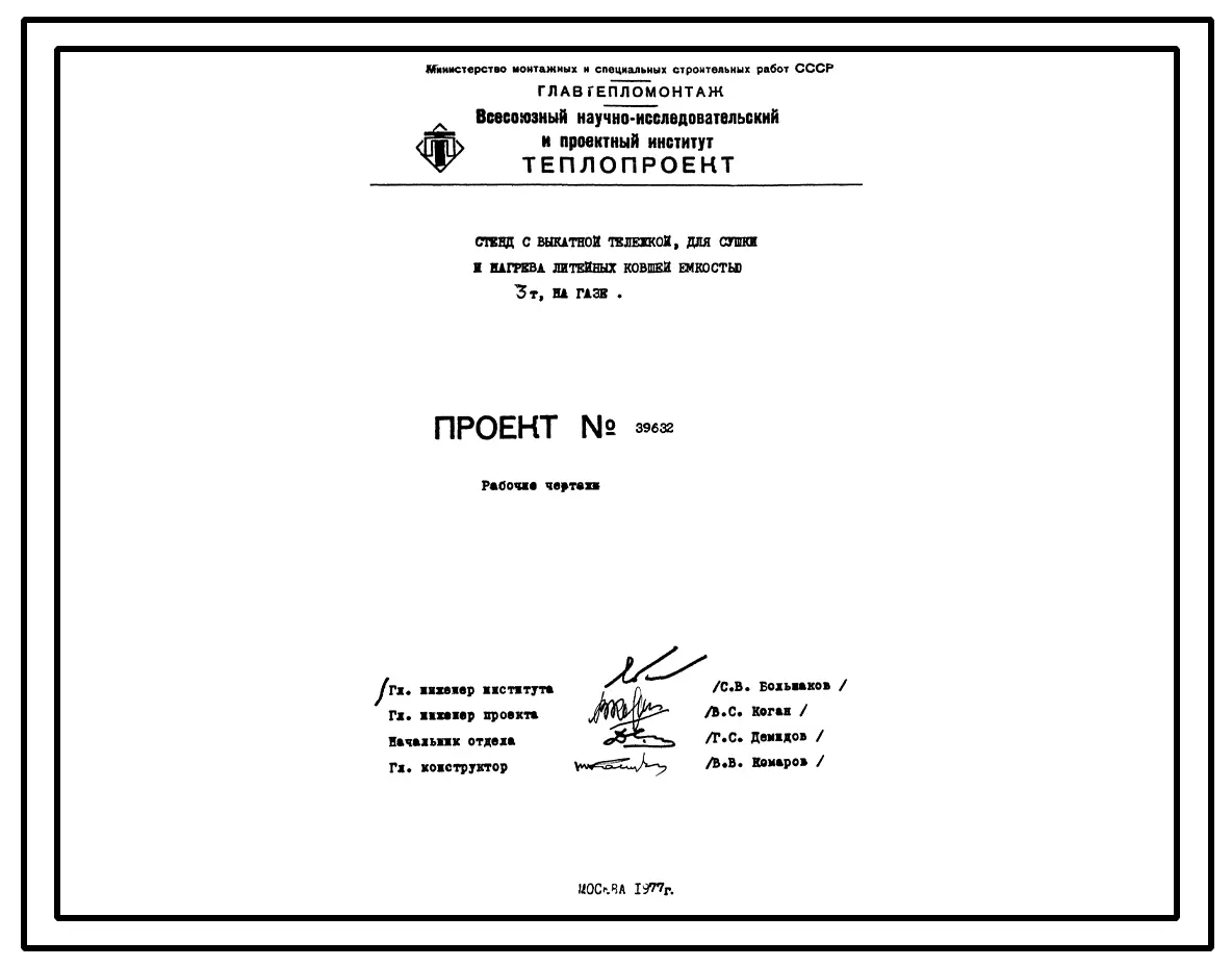 Проект 39632 Стенд с выкатной тележкой для сушки и нагрева литейных ковшей емкостью 3 т на газе