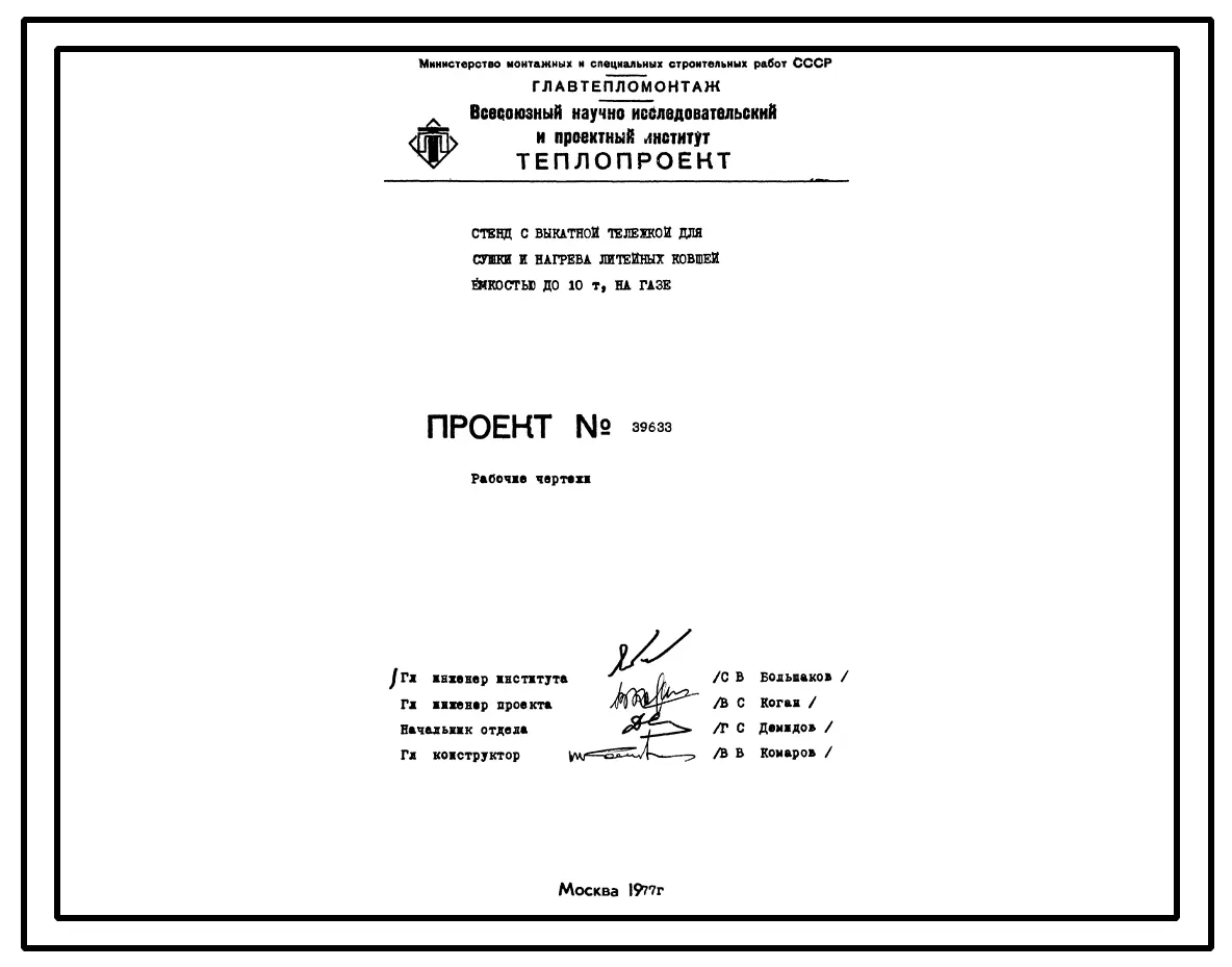 Проект 39633 Стенд с выкатной тележкой для сушки и нагрева литейных ковшей ёмкостью до 10т, на газе