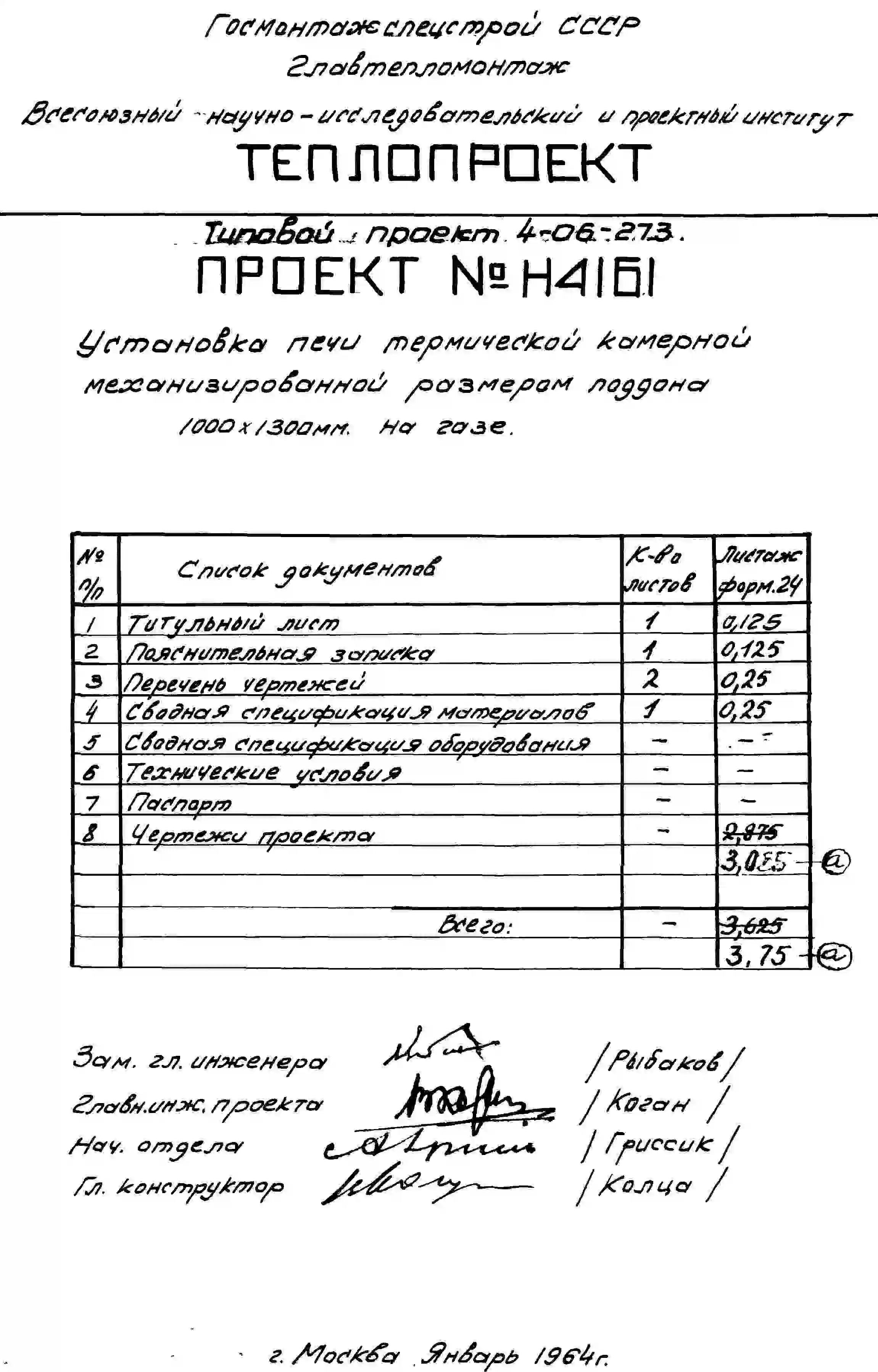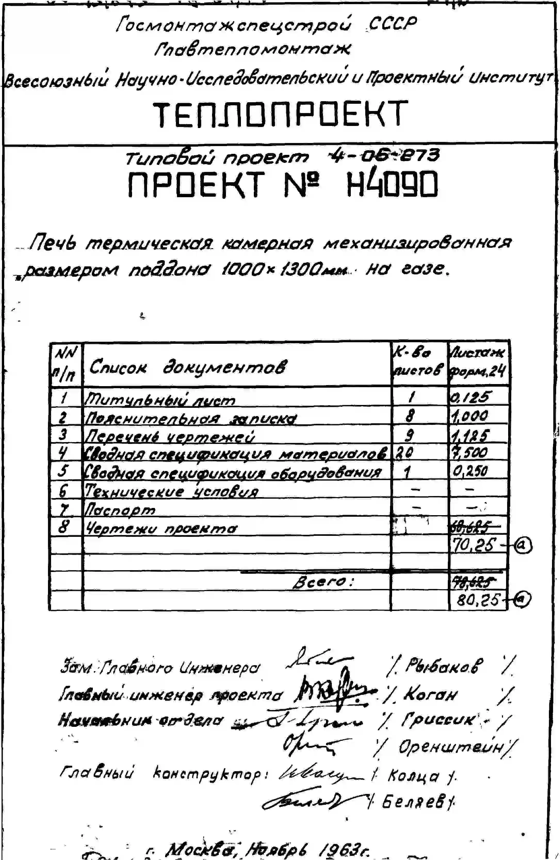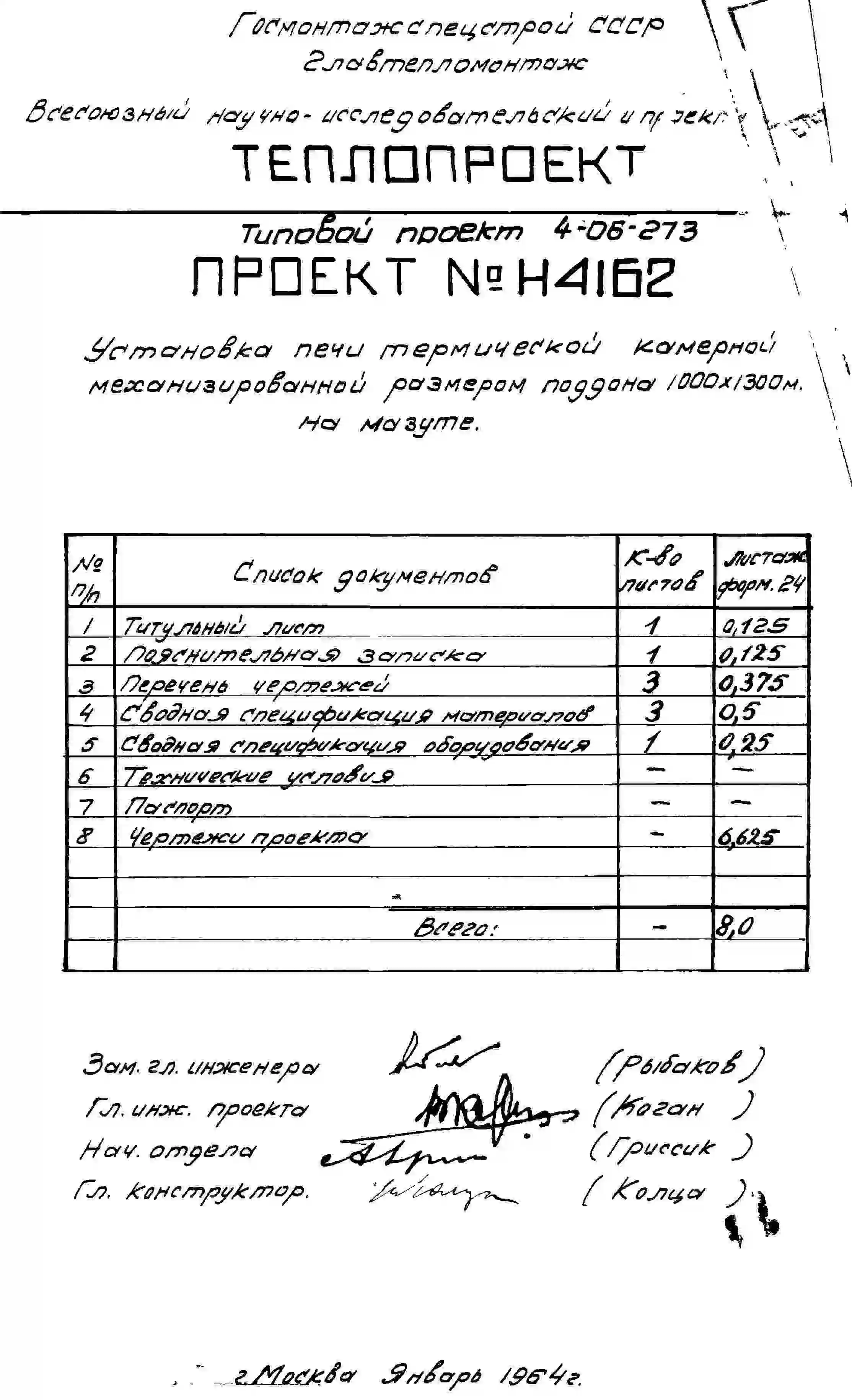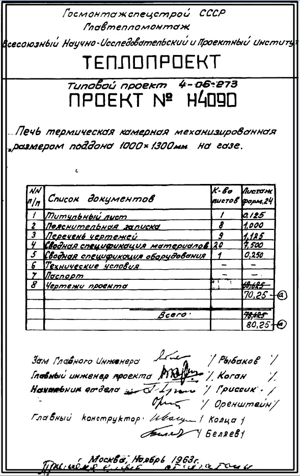 Типовой проект 4-06-273 Печь термическая камерная механизированная размерами поддона 1000х1300мм, с радиационными трубами и закалочной камерой, на газе