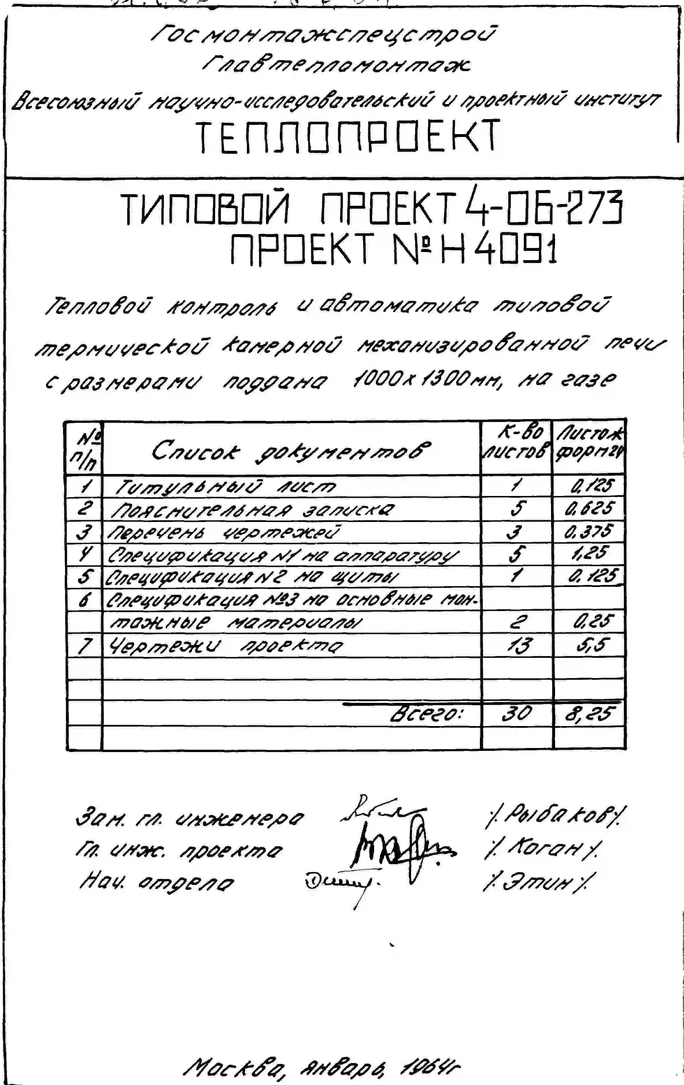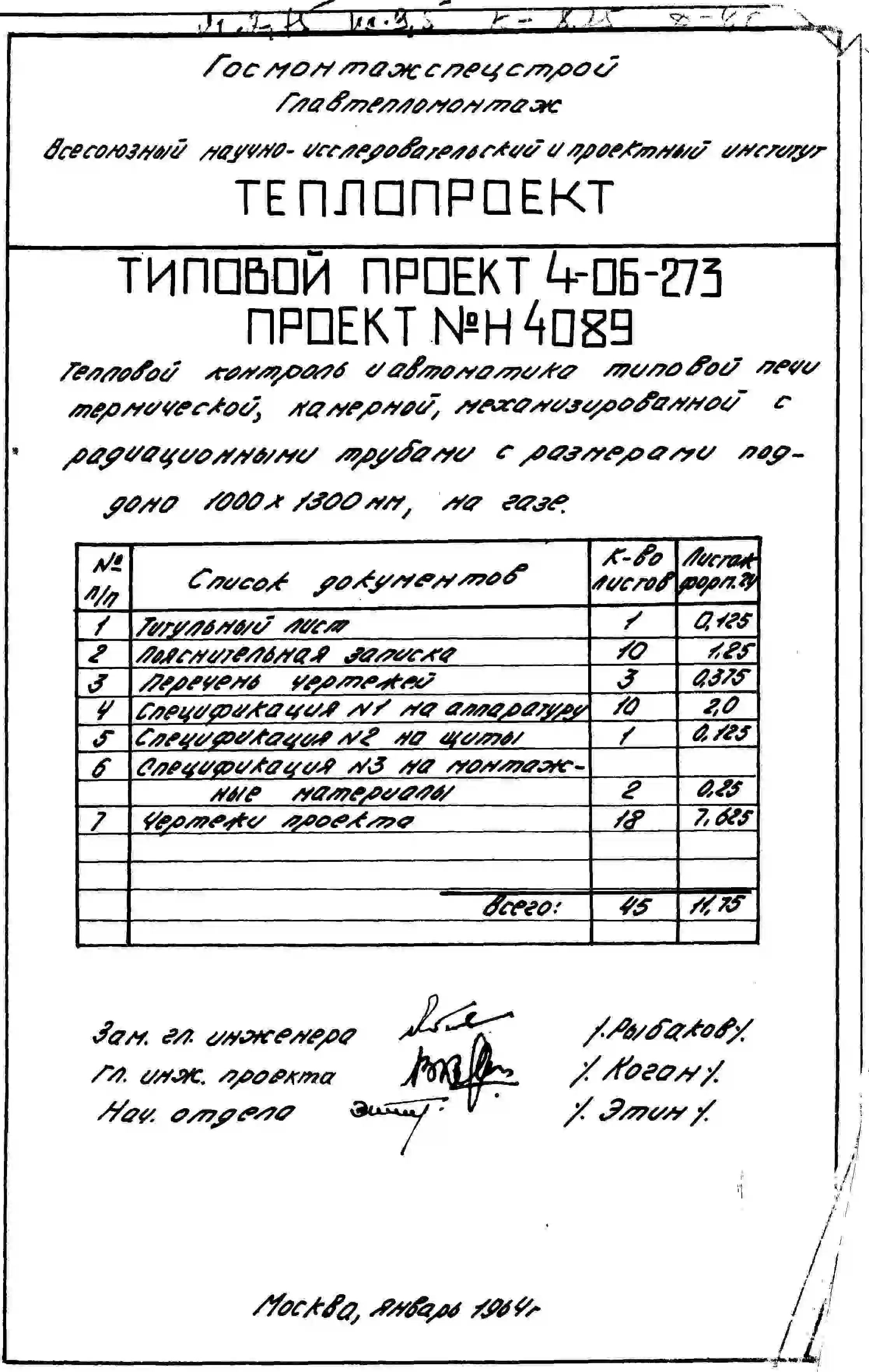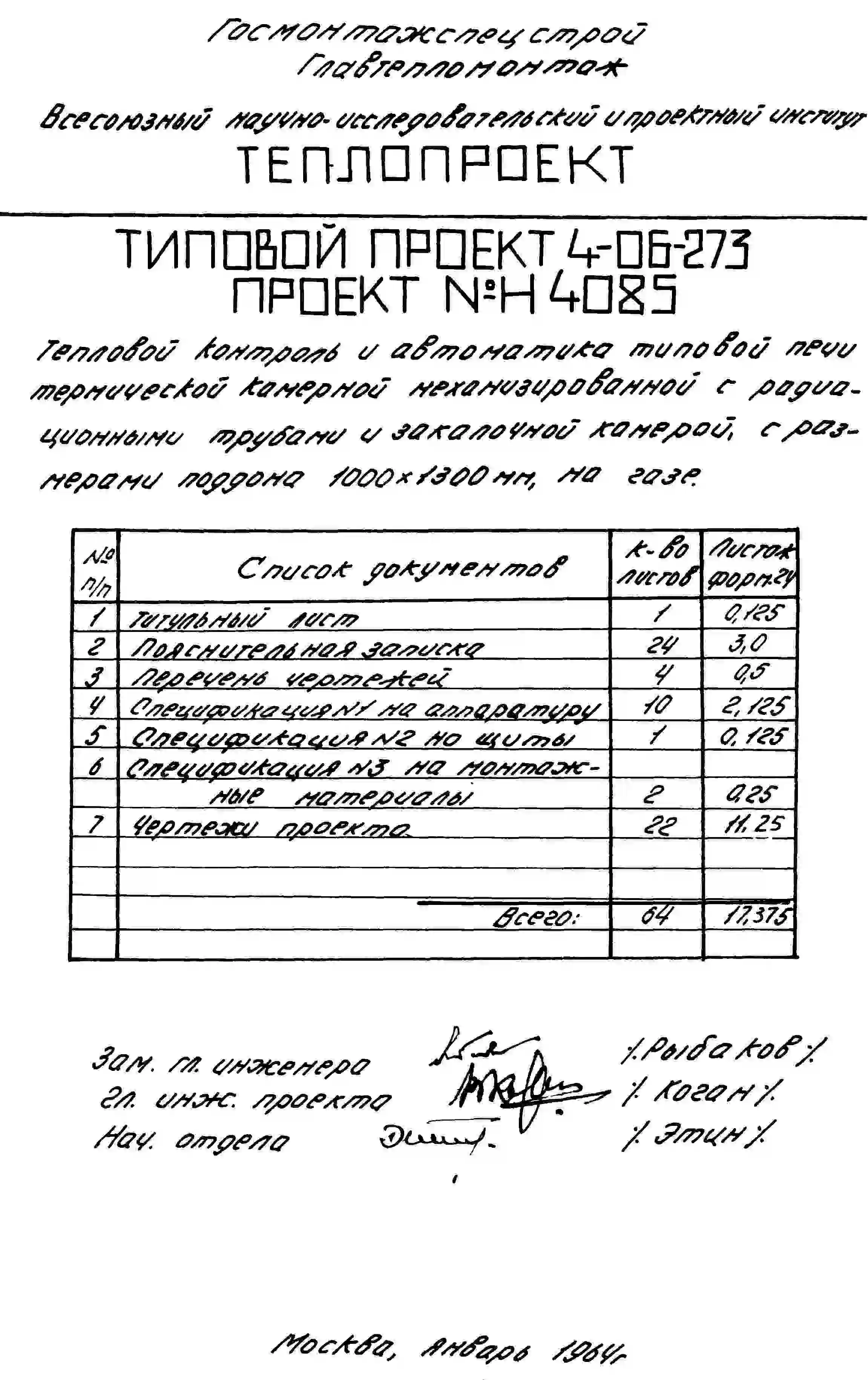 Типовой проект 4-06-273 Печь термическая камерная механизированная размерами поддона 1000х1300мм, с радиационными трубами и закалочной камерой, на газе