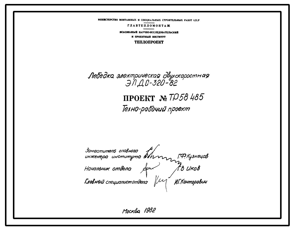 Проект 58485 Лебедка электрическая двухскоростная ЭЛДС-320-85