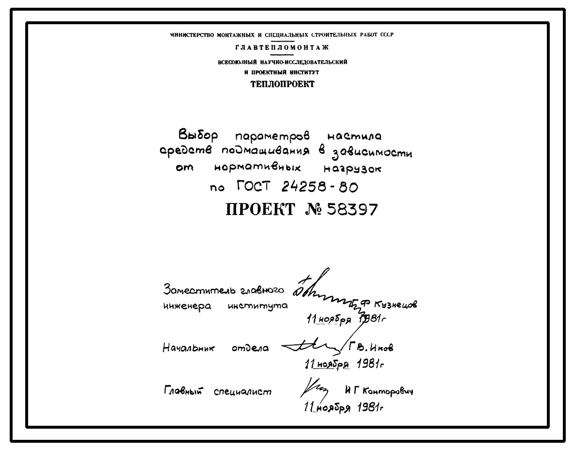 Проект 58397 Выбор параметров настила средств подмащивания в зависимости от нормативных нагрузок по ГОСТ 24258-80