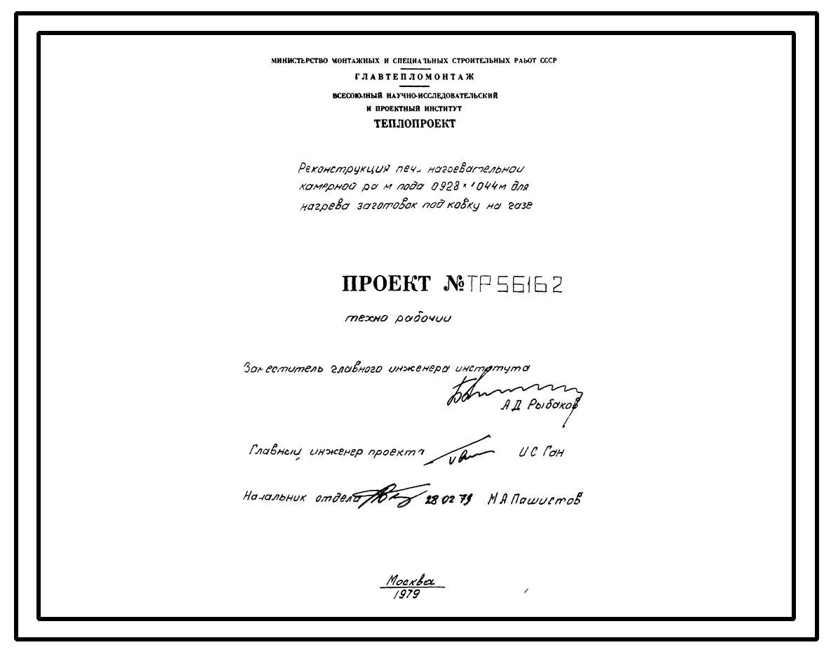 Проект 56162 Печь нагревательная камерная размер пода 0,928х1,044 м, для нагрева заготовок под ковку на газе