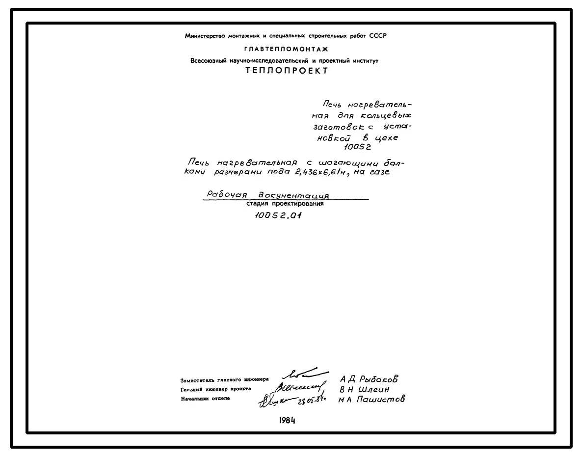 Проект 10052 Печь нагревательная с шагающими балками размерами пода 2.436х6.61 м, на газе