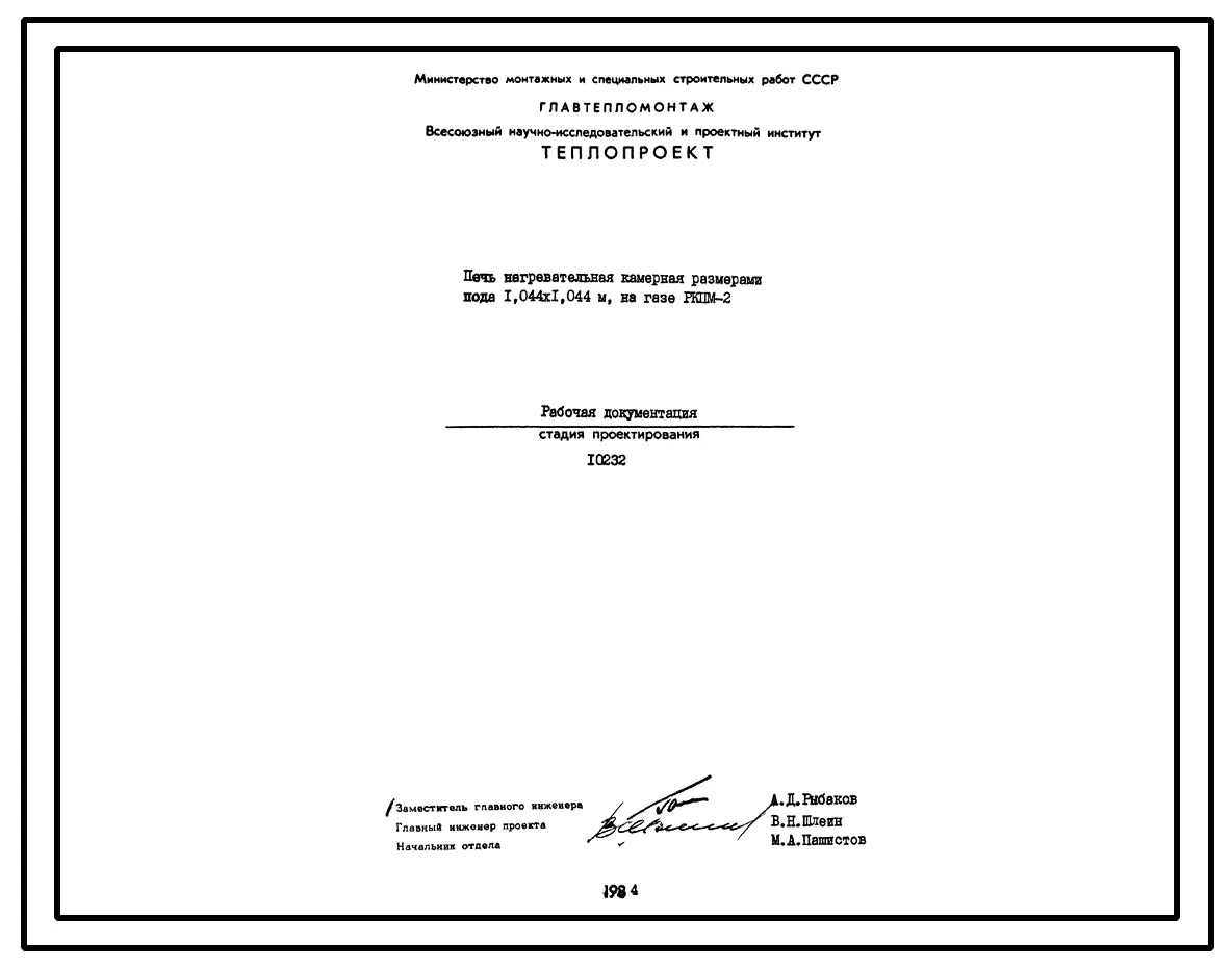 Проект 10232 Печь нагревательная камерная размерами пода 1.044х1.044м, на газе РКПМ-2