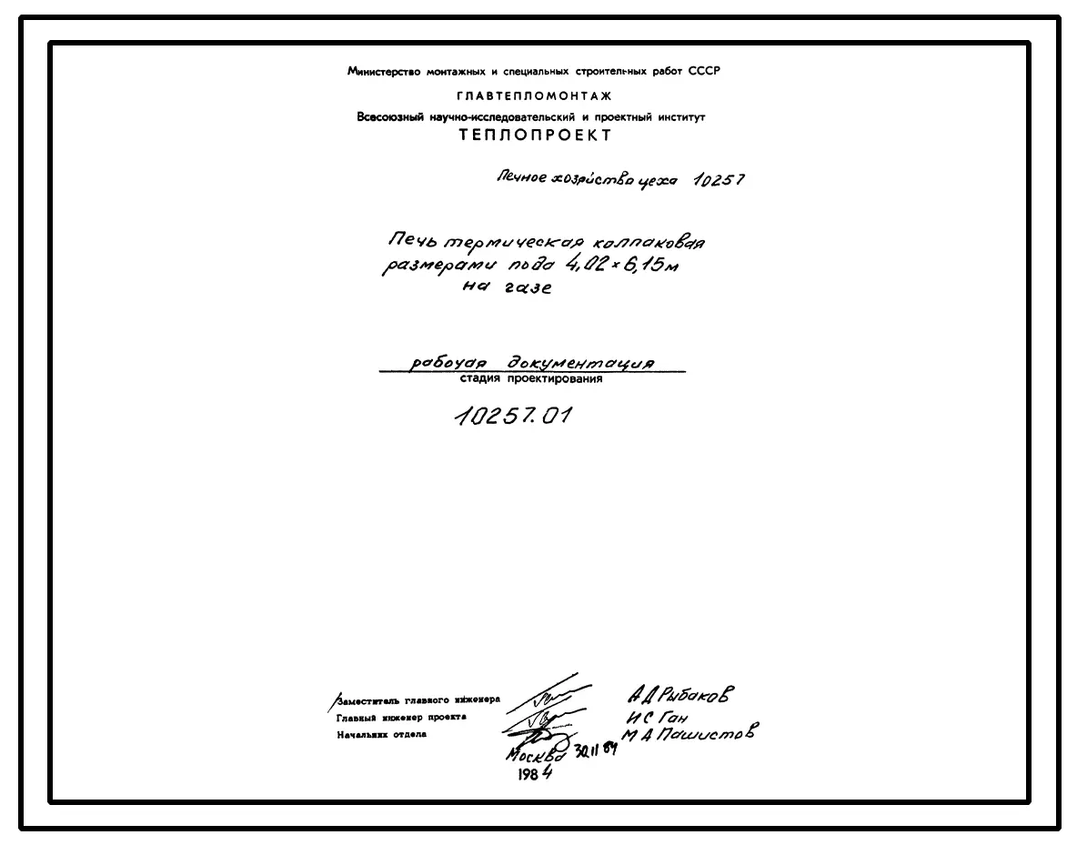 Проект 10257 Печь термическая колпаковая размерами пода 4.02х6.15 м на газе