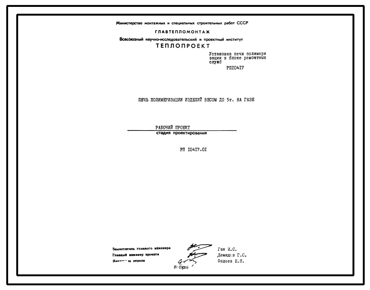 Проект РП10417.01 Печь полимеризации изделий весом до 5 т, на газе
