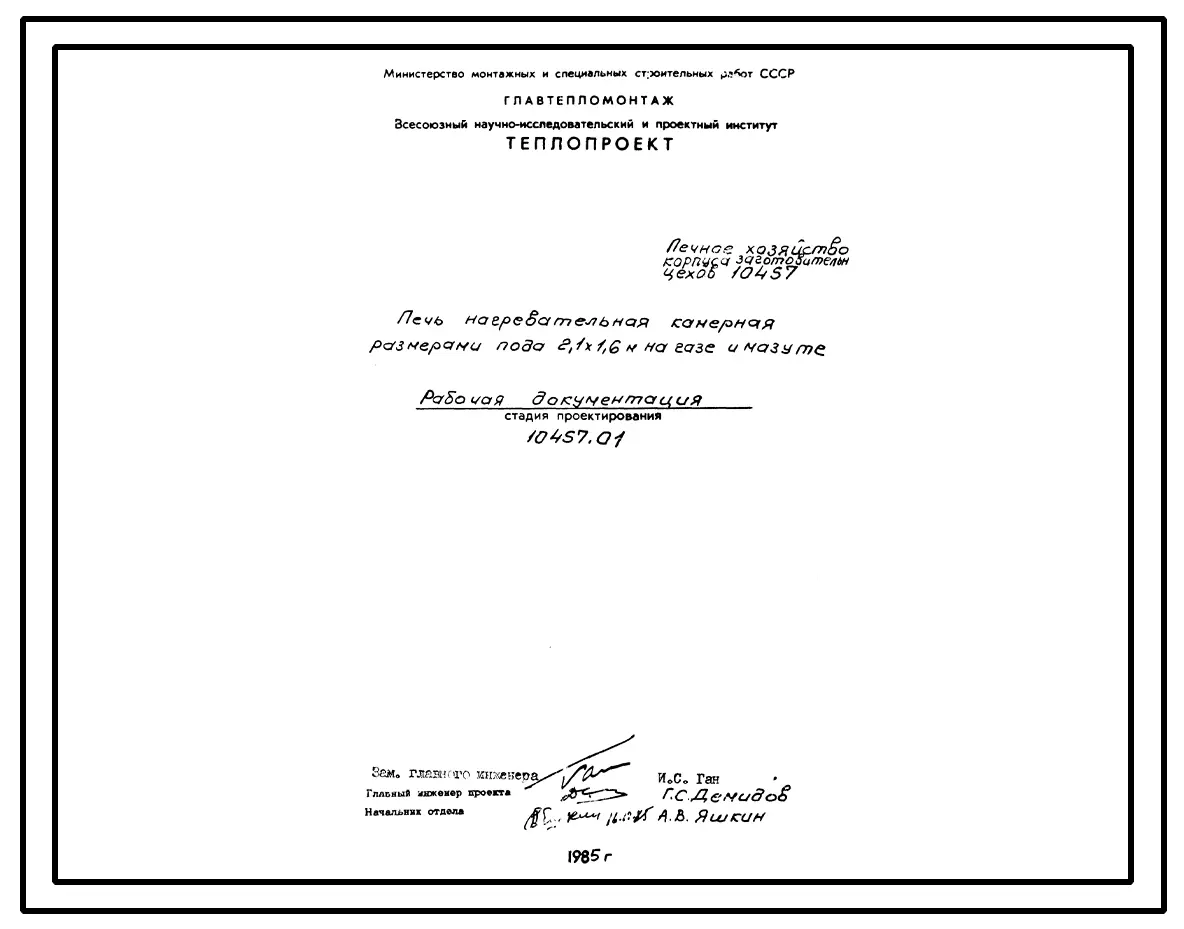 Проект 10457 Печное хозяйство корпуса заготовительных цехов