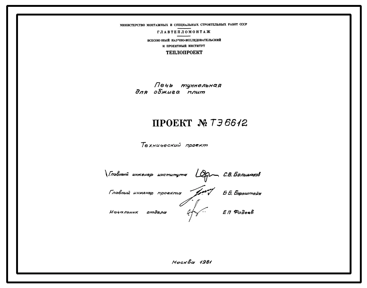 Проект 6612 Печь туннельная для обжига плит