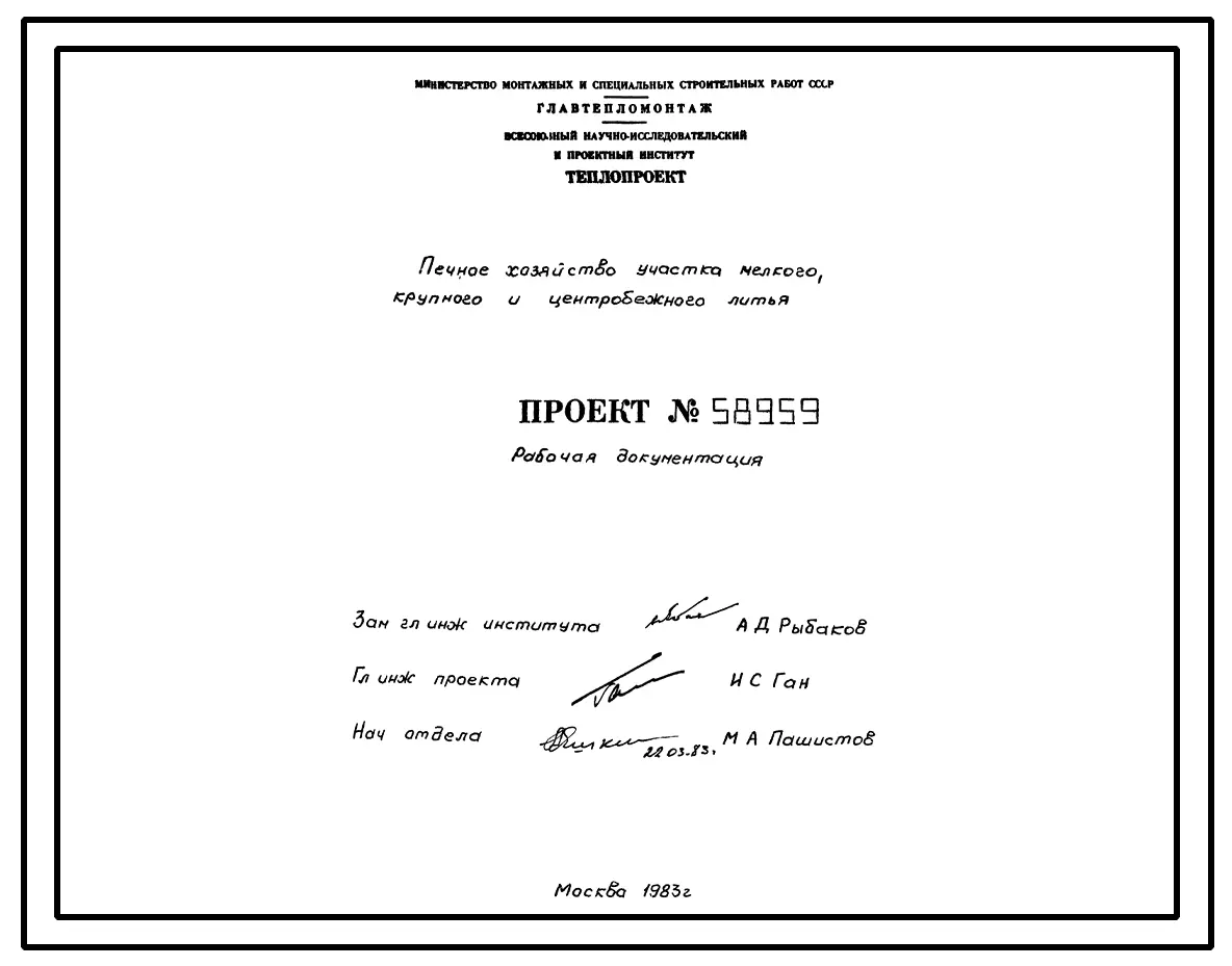 Проект 58959 Печное хозяйство участка мелкого, крупного и центробежного литья