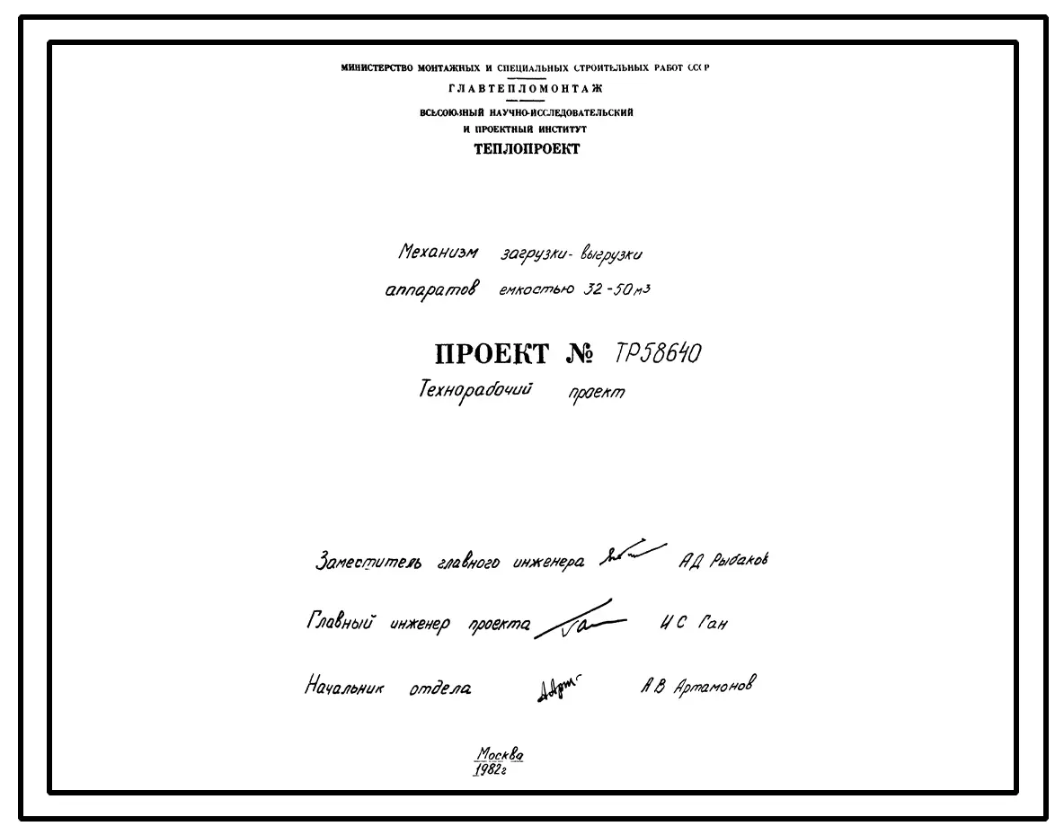 Проект 58640 Механизм загрузки-выгрузки аппаратов емкостью 32-50 м³