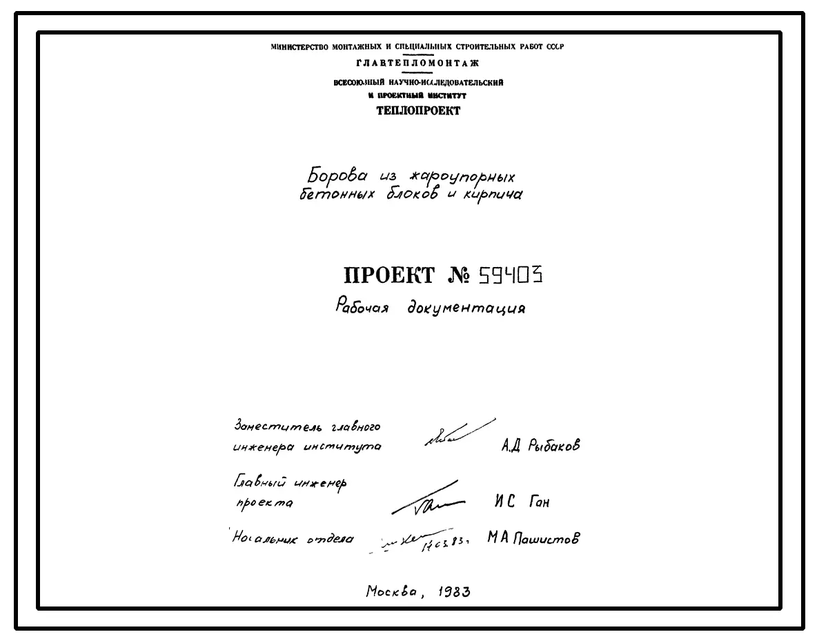 Проект 59403 Борова из жароупорных бетонных блоков и кирпича