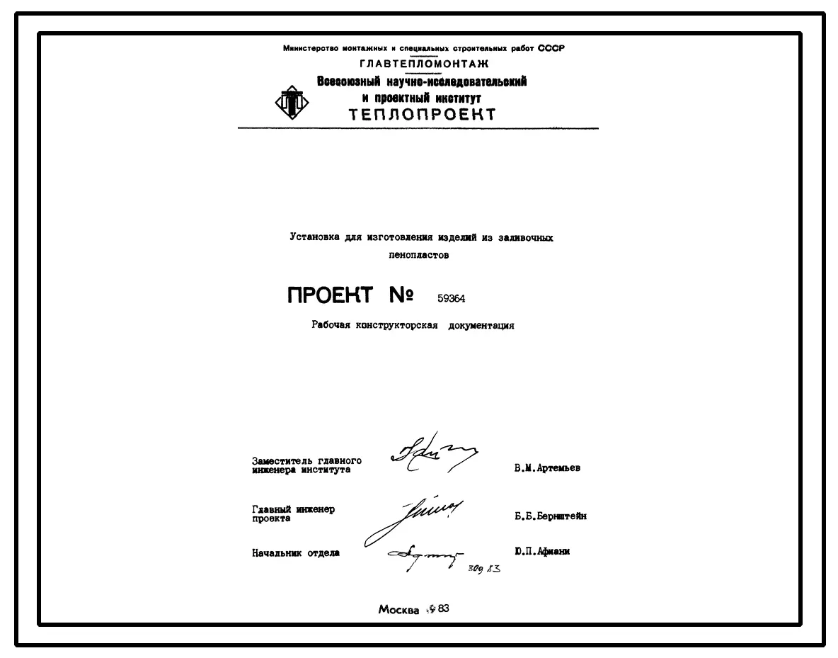 Проект 59364 Установка для изготовления изделий из заливочных пенопластов