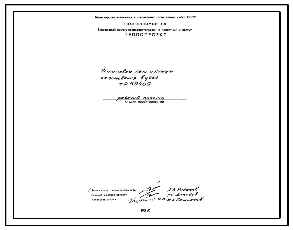 Проект 59409 Установка печи и камеры охлаждения в цехе