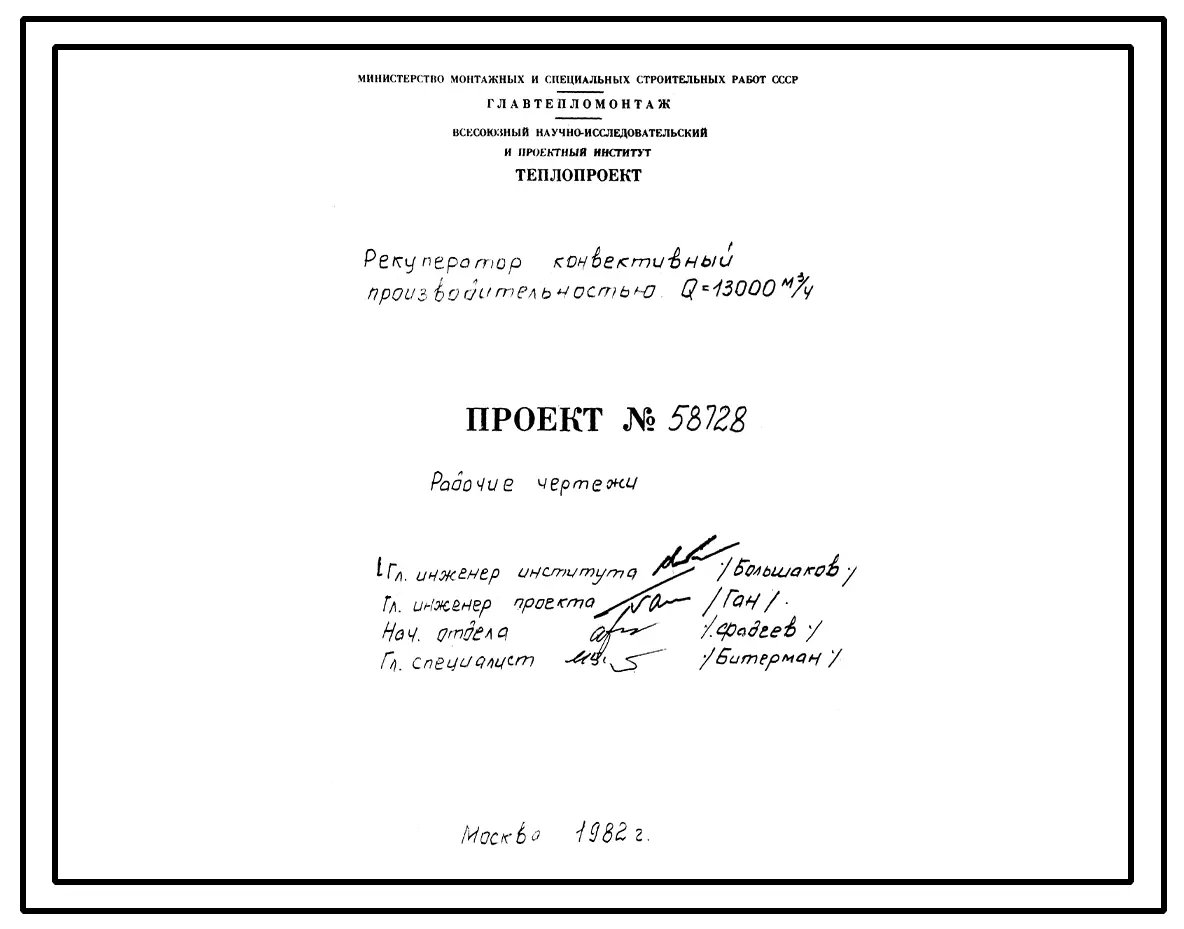 Проект 58728 Рекуператор конвективный производительностью Q=13000 м³/ч