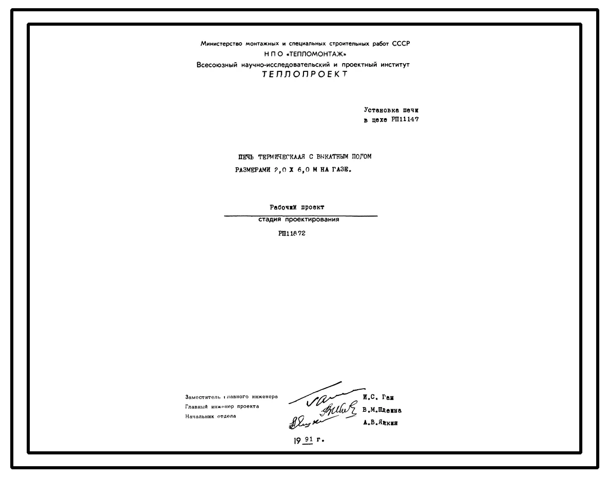 Проект 11872 Печь термическая с выкатным подом размером 2.0х6.0 м на газе