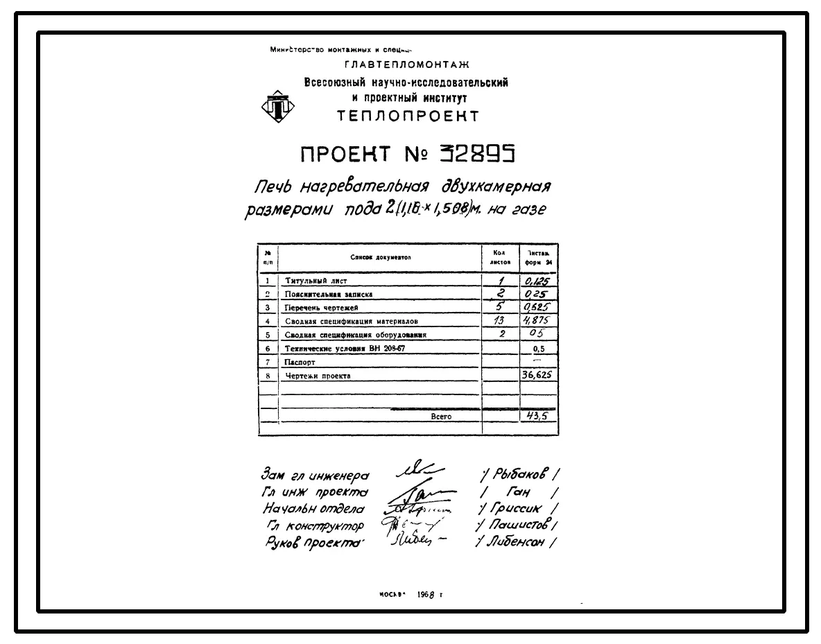 Проект 32895 Печь нагревательная двухкамерная размерами пода 2(1,16-1,508)м на газе