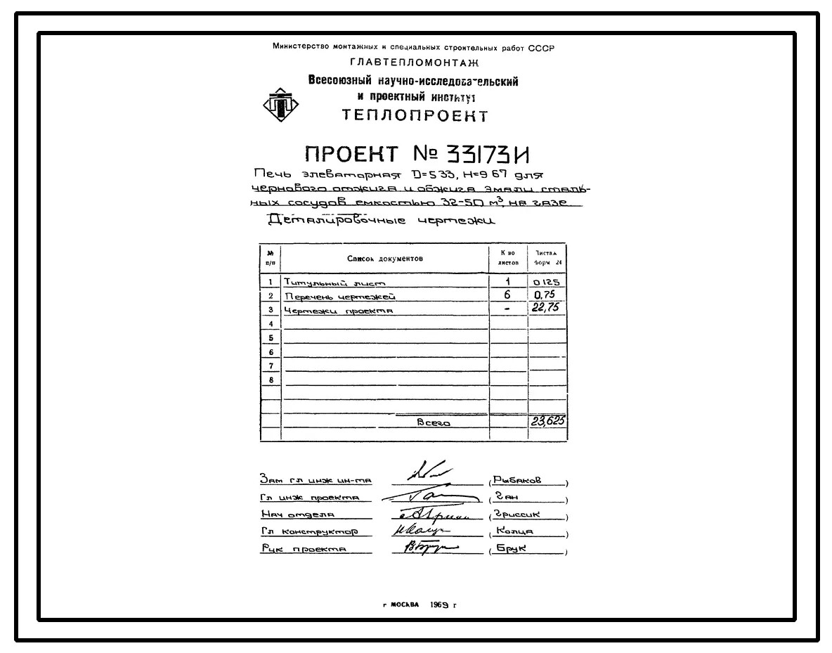 Проект 33173И Печь элеваторная D=5,33 H=9,67 для чернового обжига эмали стальных сосудов ёмкостью 32-50м³ на газе
