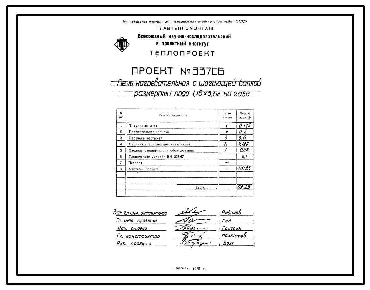 Проект 33706 Печь нагревательная с шагающей балкой размерами пода 1,16х5,1 м на газе