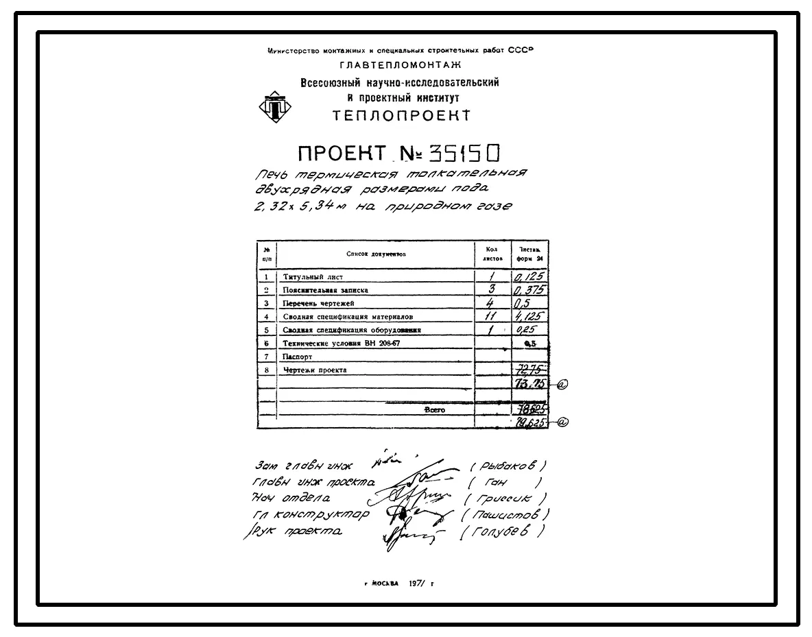 Проект 35150 Печь термическая толкательная двухрядная размерами пода 2,32х5,34 м на природном газе