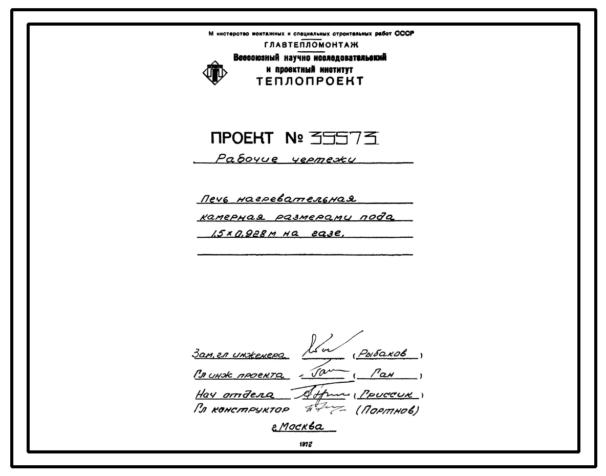 Проект 35573 Печь нагревательная камерная размерами пода 1,5х0,928 м на газе