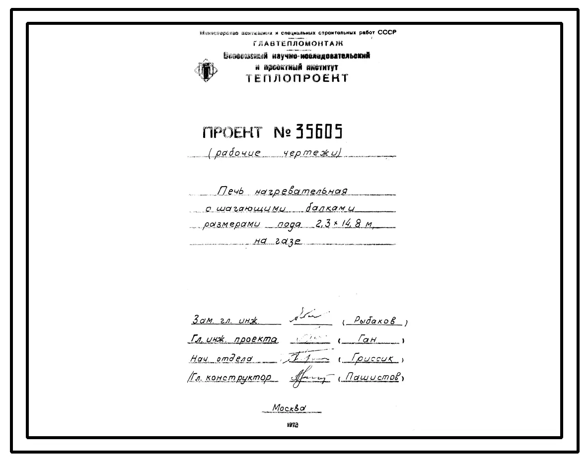 Проект 35605 Печь нагревательная с шагающими балками размерами пода 2,3х14,8 м на газе