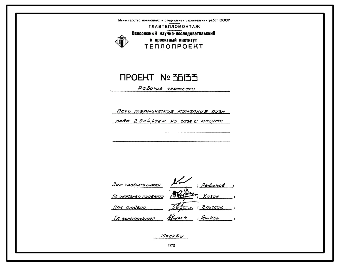 Проект 36133 Печь термическая камерная рам пода 2,9х4,408 м на газе и мазуте