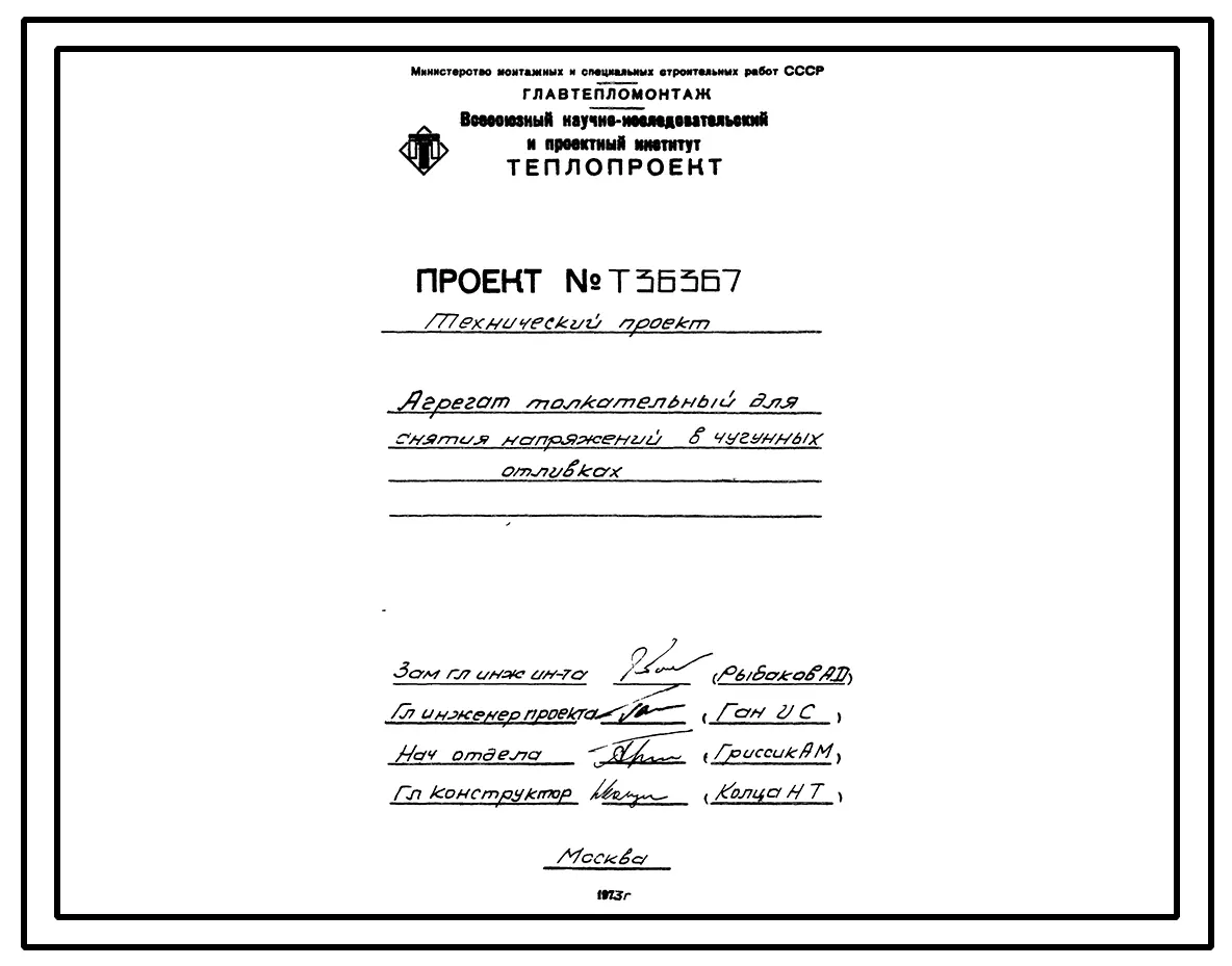 Проект 36367 Агрегат толкательный для снятия напряжений в чугунных отливках