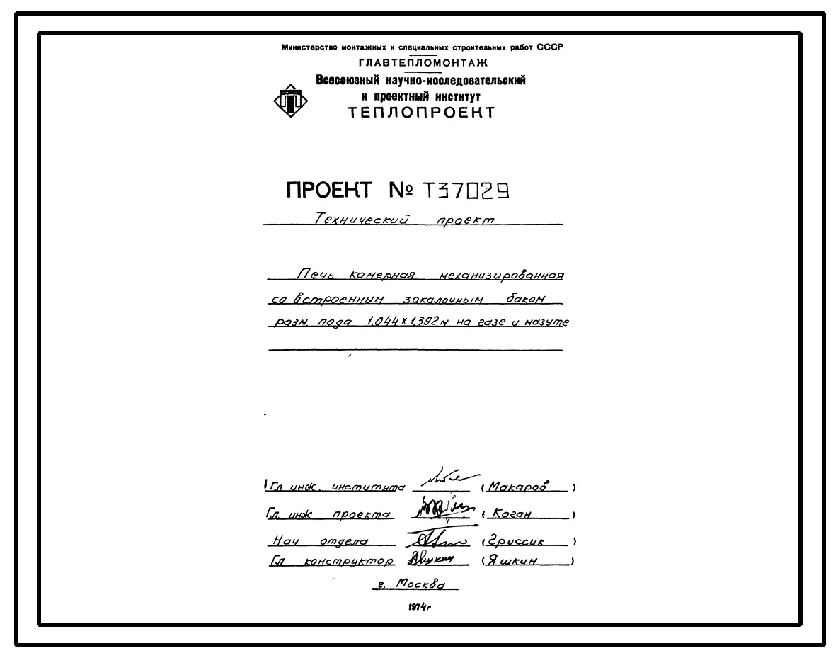 Проект 37029 Печь камерная механизированная со встроенным закалочным баком размером пода 1,044х1.392 м, на газе и мазуте