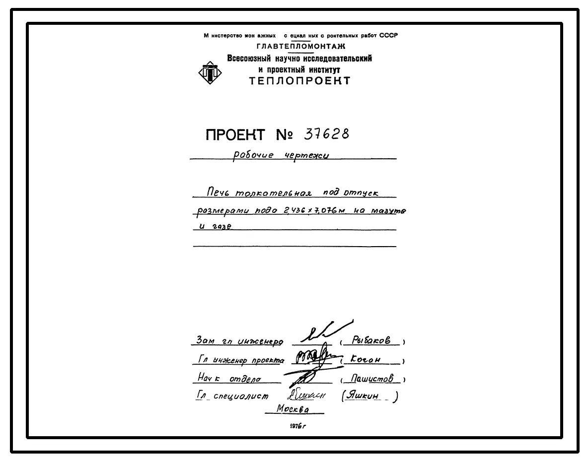 Проект 37628 Печь толкательная под отпуск раз.пода 2,436х7,076 м на мазуте и газе