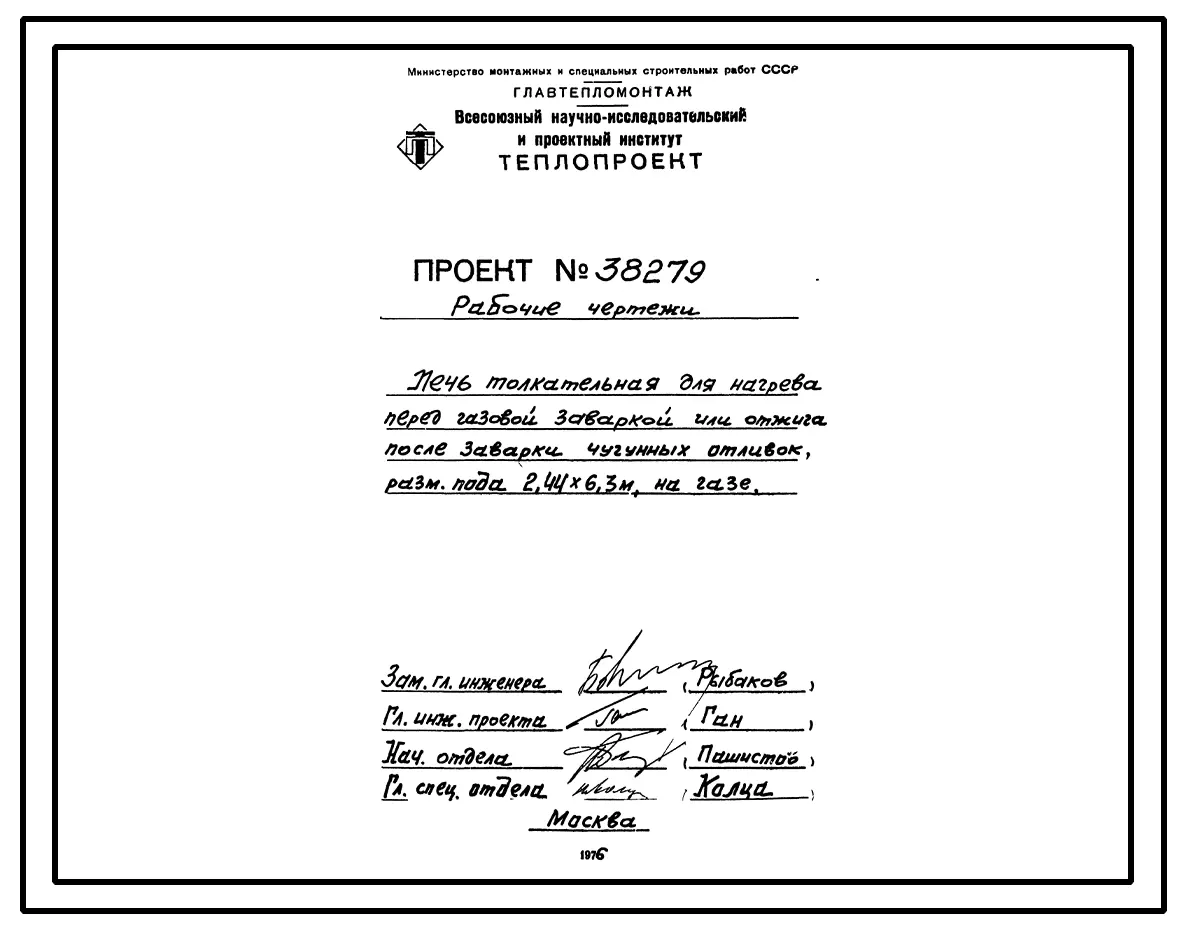 Проект 38279 Печь толкательная для нагрева перед газовой заваркой или отжига после заварки чугунных отливок, размером пода 2,44х6,3 м, на газе