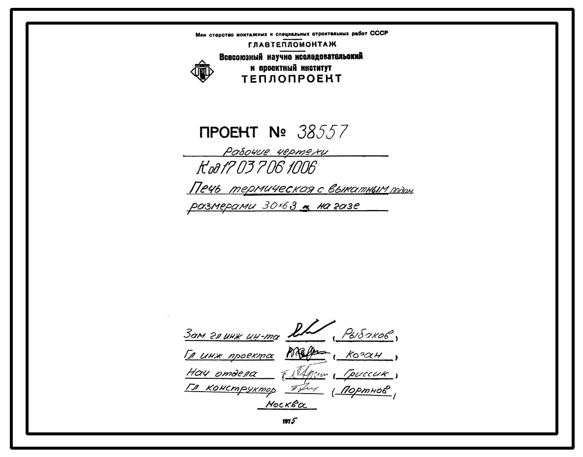 Проект 38557 Печь термическая с выкатным подом размерами 3,0х6,3 м, на газе