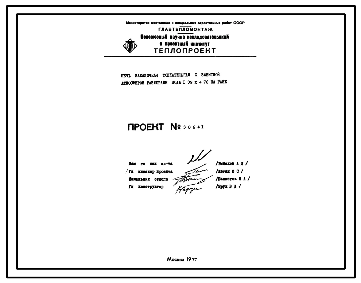 Проект 38641 Печь закалочная толкательная с защитной атмосферой размеры пода 1,39х4,76 м, на газе
