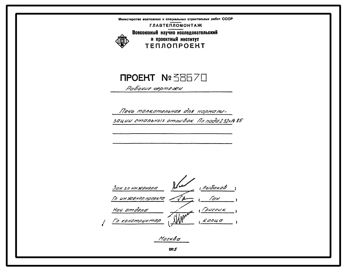 Проект 38670 Печь толкательная для нормализации стальных отливок, пл. пода 2,32х14,85 м