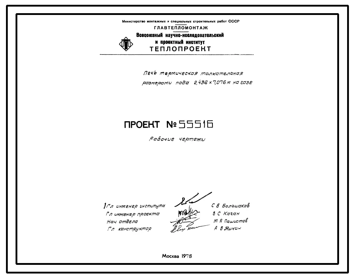 Проект 55516 Печь термическая толкательная размерами пода 2,436х7,076 м, на газе