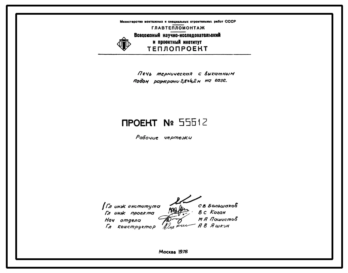 Проект 55612 Печь термическая с выкатным подом размерами 2,5х4,2м, на газе
