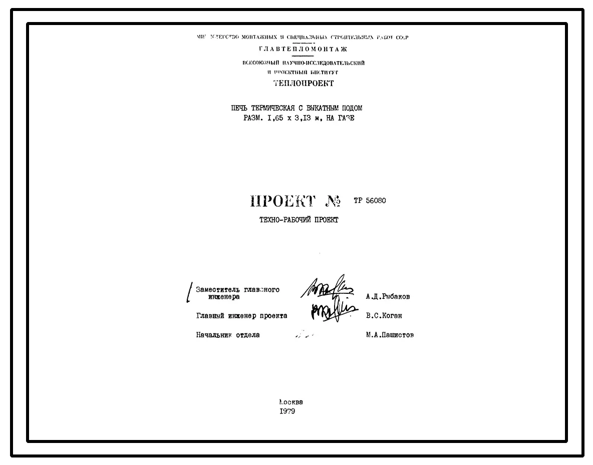 Проект 56080 Печь термическая с выкатным подом размером 1,65х3,13 м, на газе
