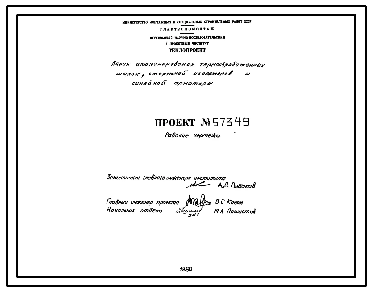 Проект 57349 Линия алюминирования термообработанных шапок, стержней изоляторов и линейной арматуры