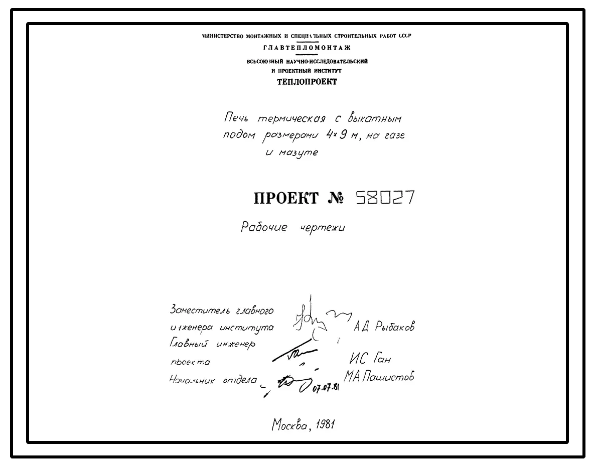 Проект 58027 Печь термическая с выкатным подом размерами 4х9 м, на газе и мазуте