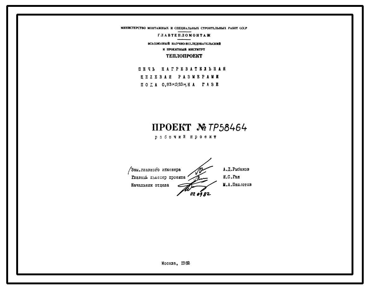 Проект 58464 Печь нагревательная щелевая размеры пода 0,93х0,93 м, на газе