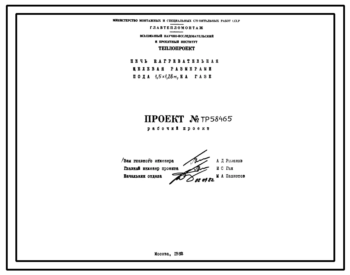 Проект 58465 Печь нагревательная щелевая размерами пода 1,5х1,28 м, на газе