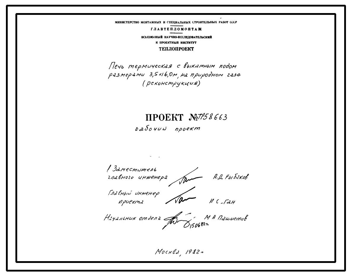 Проект 58663 Печь термическая с выкатным подом размерами 3,5х16,0 м, на природном газе