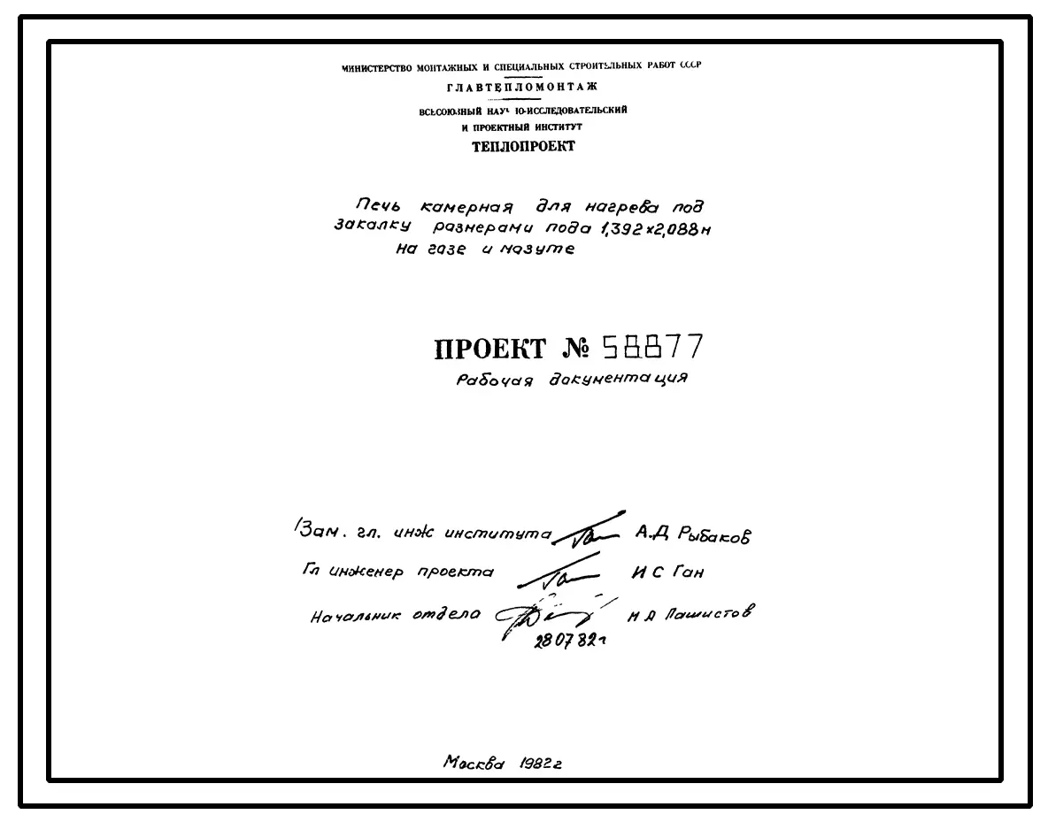 Проект 58877 Печь камерная для нагрева под закалку размерами пода 1,392х2,088 м, на газе и мазуте